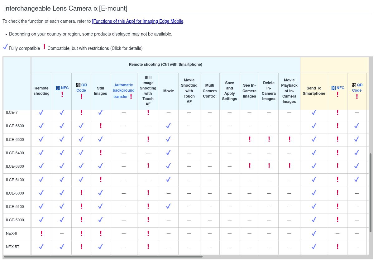 Answer found within the Imaging Edge supported cameras page.