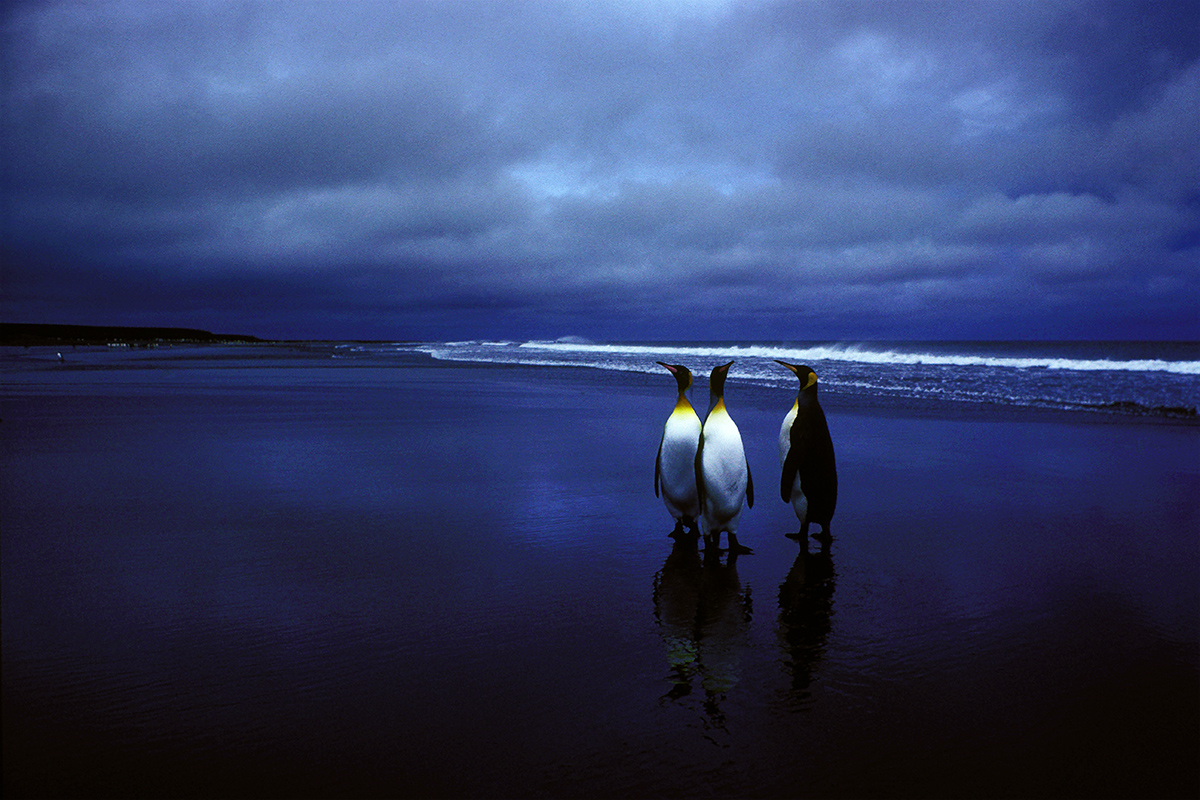 Manchots royaux sur la plage de Ratmanoff aux Iles Kerguelen.