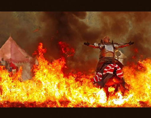 Entstanden auf einem Mittelaltermarkt. Zum Ritterspektakel gehört auch der Ritt durch brennendes Stroh ...
